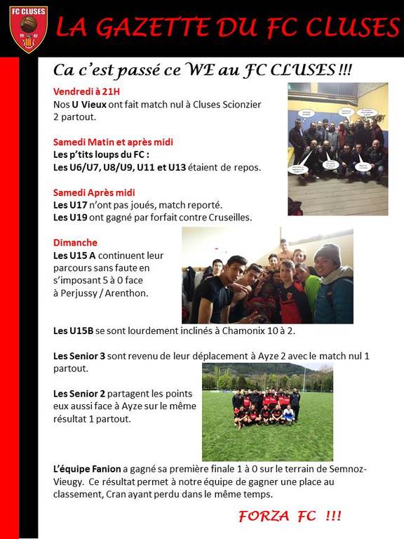Photos associées : La Gazette du FC CLUSES AGENDA WE du 23 et 24 Avril 2016