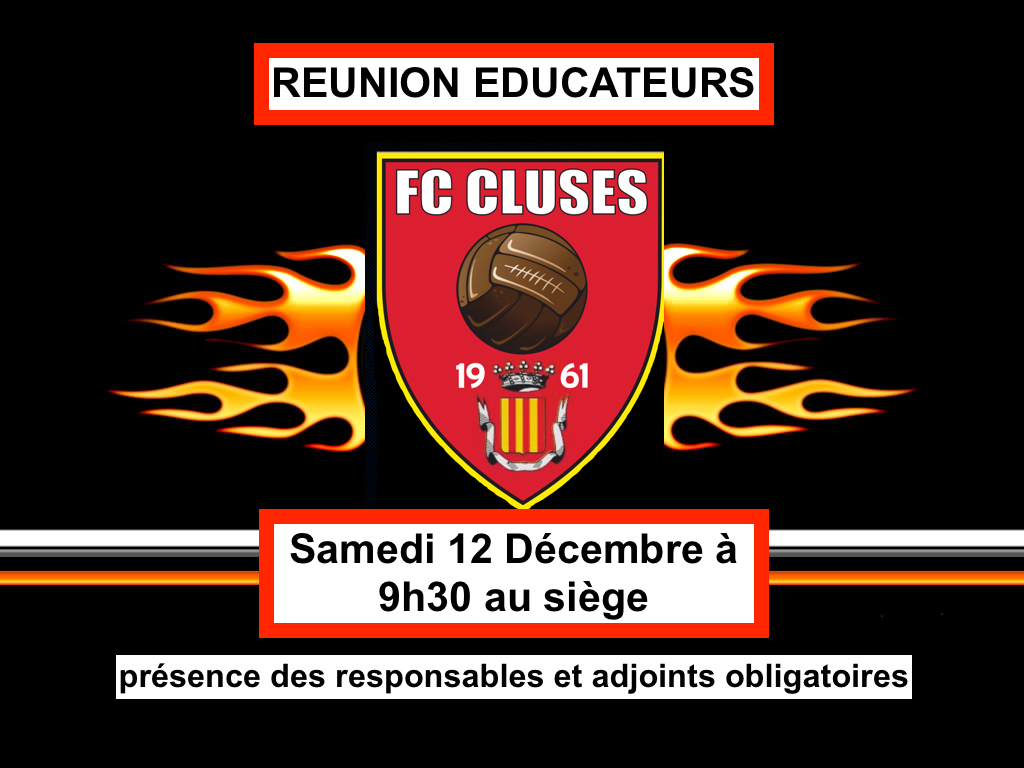 Samedi 12 Décembre aura lieu une réunion éducateurs pour faire le bilan de cette première partie de saison, et préparer la suite de la saison.