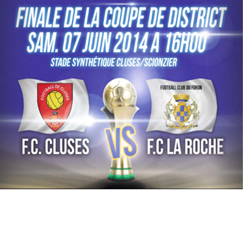 C'est ce samedi que la finale de la Coupe de District aura lieu, à 16h au stade intercommunal de Cluses-Scionzier. Historique pour le club, cette finale opposera notre équipe 3 à nos amis du FC Foron, fraichement champion et donc promue en 1ère Division de District. Venez encourager notre équipe qui peut rentrer dans l'histoire du club. FORZA FC!!!