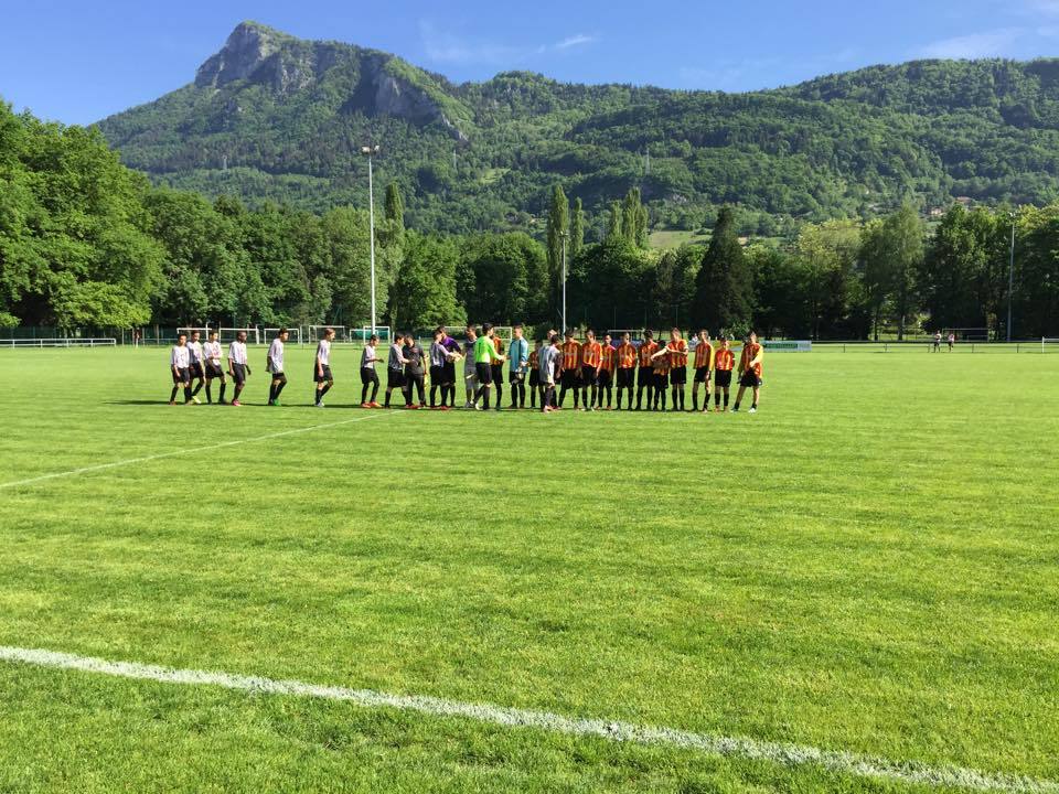 L'équipe fanion cloturait cette belle journée en recevant Semnoz. Mené 2-0 à la pause, nos joueurs se sont arrachés pour revenir dans le match puis égaliser à 10 min de la fin. Mais l'arbitre sifflait un pénalty pour les visiteurs qui reprenaient l'avantage à la 89ème.. Sur le dernier corner du match, Steve parvenait à mettre son deuxième corner rentrant du match à la 94ème. Score final 3-3. Bon résultat sur le plan comptable. Il faudra prendre 2 points sur les 2 derniers matchs pur assurer son maintient.