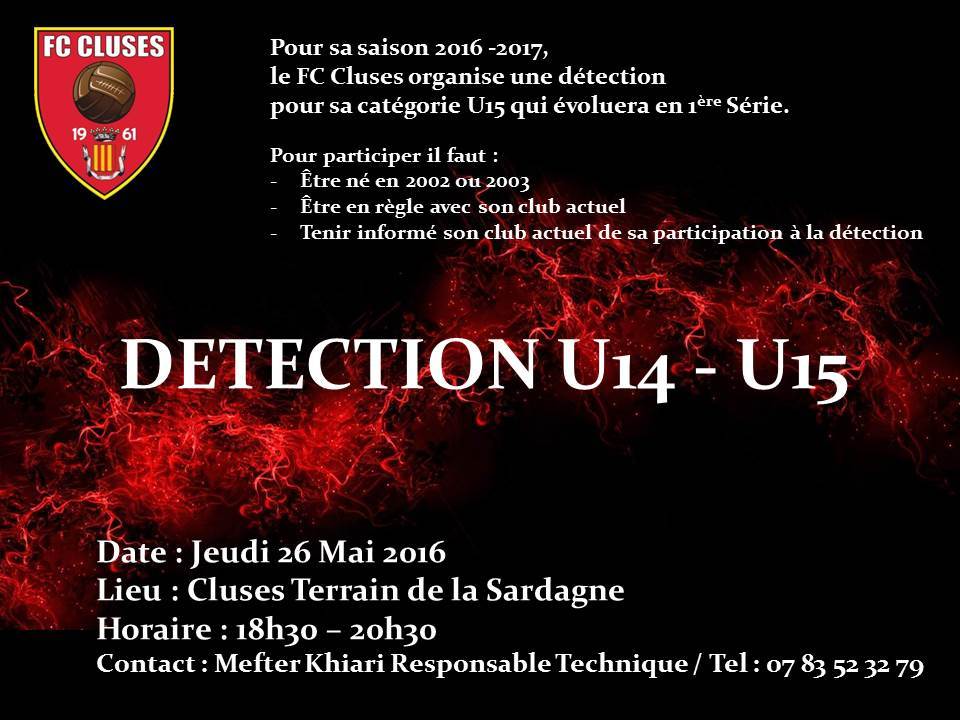 DETECTION U15 Saison 2016 2017