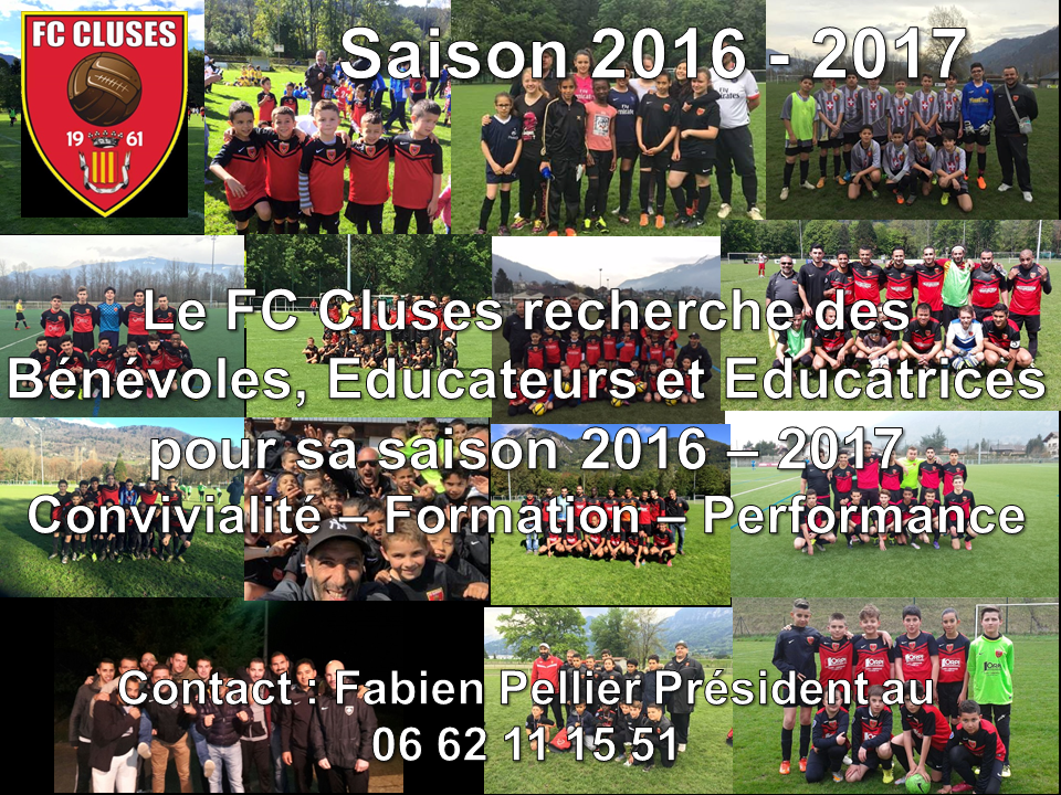 Pour la saison 2016 - 2017 le FC Cluses recherches des Bénévoles, Éducateurs et Éducatrices...