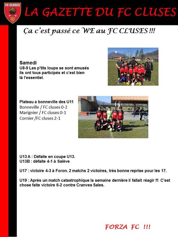 La Gazette du FC CLUSES WE du 19 et 20 Mars 2016