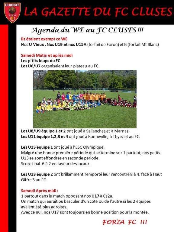 Photos associées : La Gazette du FC CLUSES WE du 7 et 8 Mai 2016