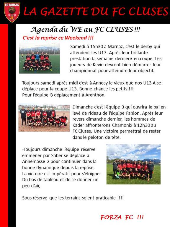 La Gazette du FC CLUSES 5 et 6 Mars 2016