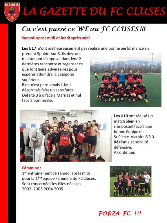 La Gazette du FC CLUSES WE du 16 et 17 Avril 2016