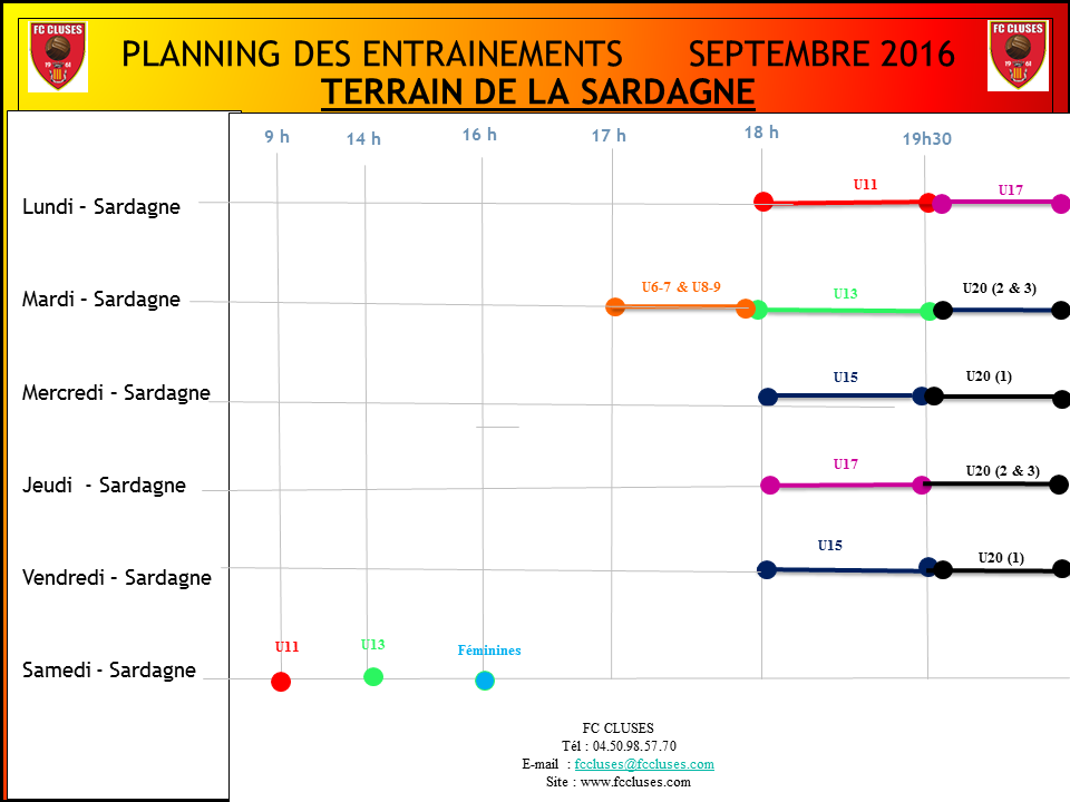 Planning entrainement Septembre 2016