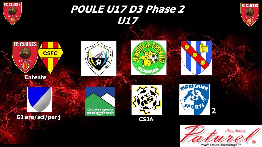 Poule U17 Phase 2 en D3. Entente avec Cluses Scionzier FC 3. Poule de 8 équipes en match aller-retour Les 2 premiers sont promus et éventuellement le N 3ème et 4ème (en fonction des résultats ligue et nombre d'équipe)