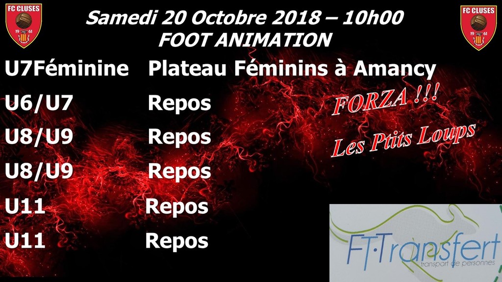 FC CLUSES AGENDA DU WE FOOT ANIMATION