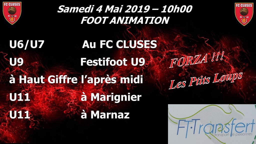 FC CLUSES AGENDA DU WE FOOT ANIMATION